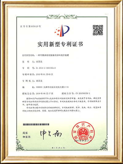 • 實(shí)用新型專利證書(一種凝膠混合裝置)