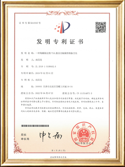 • 發(fā)明專利證書證書(一種高稿氧化物/Ti02復(fù)合光觸